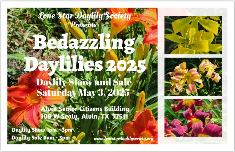 The premiere event for the Lone Star Daylily Society each year is the Flower Show. Sanctioned by the American Hemerocallis Society, this is a judged competition of daylilies and daylily themed designs. The competition is spirited and friendly, and presents a dazzling array of the world of daylilies to the public. Competition is open to all, however, membership in the AHS is required to receive awards. Entrants may join the AHS at the show.